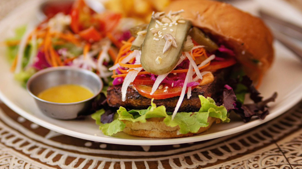Make yourself comfortable in its cosy seating area, as large windows fill the space with oodles of light. Relish vegetarian delicacies, vegan chai and the renowned Maverick & Farmer coffees and cold brews. Sample vibrant salads, buckwheat pancakes and buttery scones. Bite into the popular Zanzibar Burger, loaded with pineapples, vegetable patty, chutney and almond feta cheese.