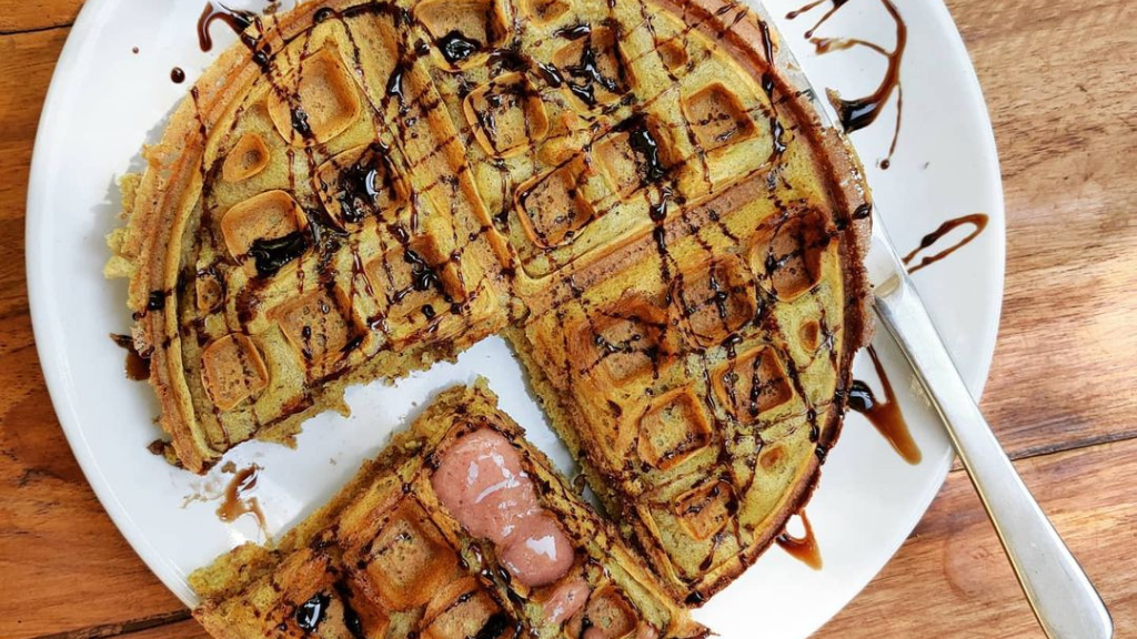 From organic pizzas to gluten-free desserts, the menu boasts vegan alternatives for most dishes. Binge on eclectic recipes like dairy-free Snickers gelato, cashew butter and vegan digestive biscuits. Pour yourself a cup of joe, roasted in-house, and pair it with some creamy homemade millet milk. You’ll also find coconut milk smoothie bowls and sourdough bread, made with flour grains from all over the country.