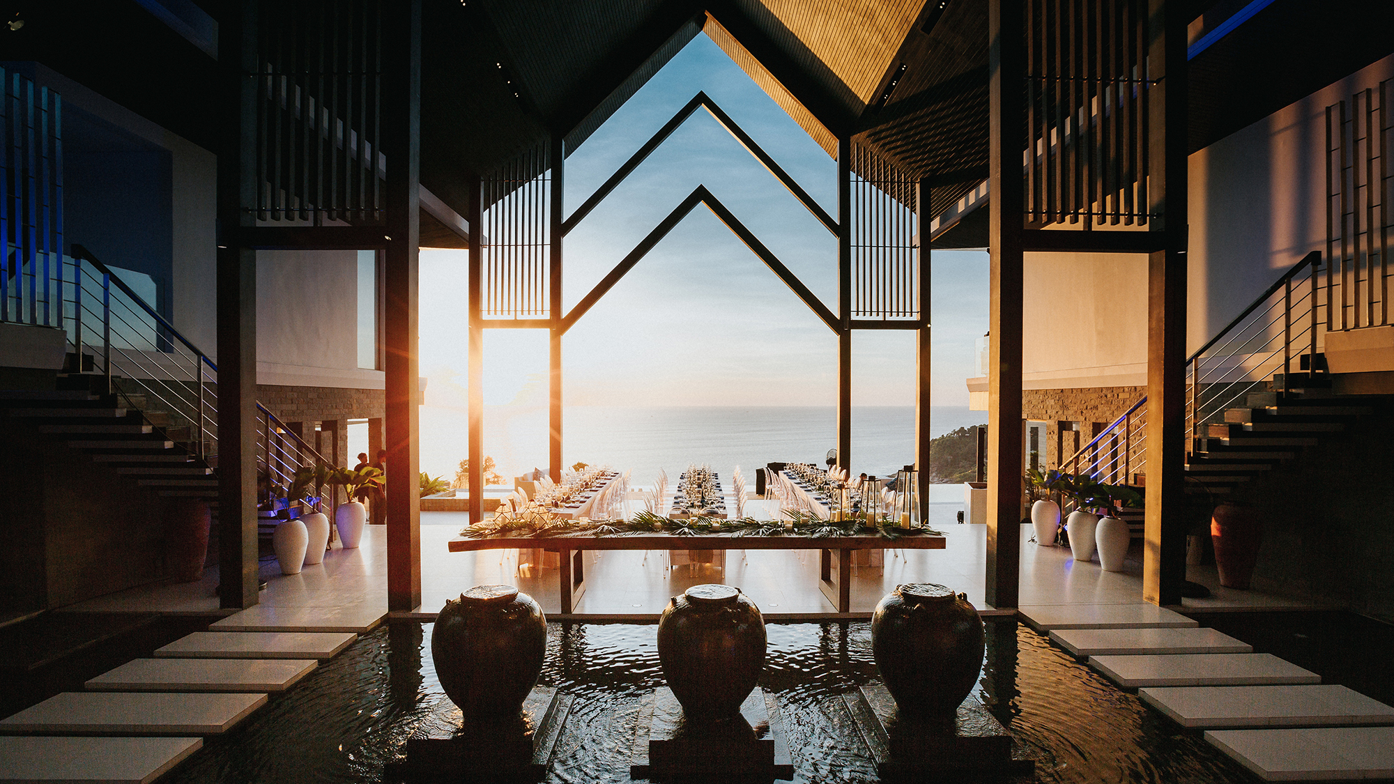 Spread over three levels, maximising on its hillside location, Villa Amanzi Kamala is an exceptional event venue. The sound of waves crashing on the rocks below is a treat only a few villas in Phuket enjoy. The villa can accommodate up to 40 guests (standing or seated) for the main function. Our events team will be happy to connect you with the best planners and organisers on the island, to make your day as special as it deserves to be.