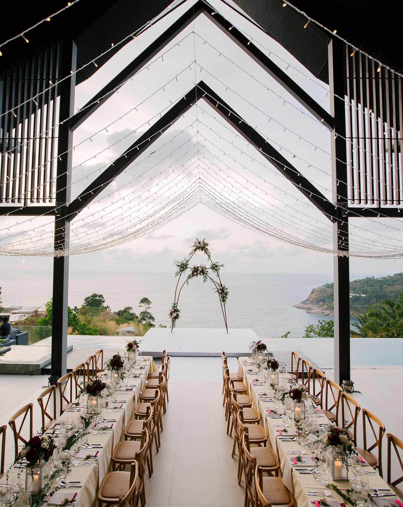 Artfully perched on the edge of a cliff, with endless sea views from the pool deck and living areas, Villa Amanzi Kamala is tailor-made for unforgettable weddings. Say your vows on the ceremonial platform on top of the infinity pool, which merges seamlessly into the blues beyond. There’s plenty of space for elegant wedding dinners against dramatic sunsets on the pool deck and lawned terraces, while rehearsals and small-group pre-wedding cocktails are best organised in the open-sided pavilion set on a raised platform at one end of the deck.
