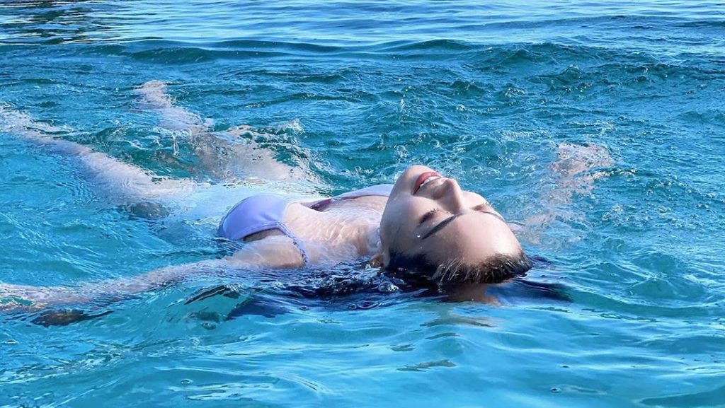 Jessica enjoyed a relaxing swim in the stunning 22-metre infinity pool