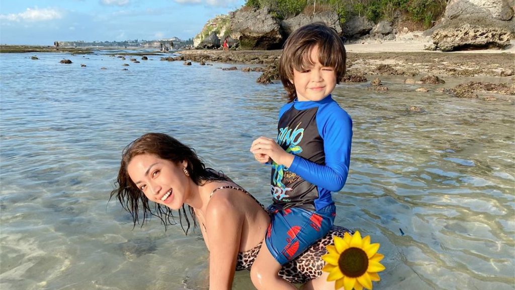 The mother and son duo didn’t miss out on visiting the nearby beaches. They also spent an afternoon in the sandy beach of Padang Padang, where charming white-sand bays meet rock pools and a host of local cafés.