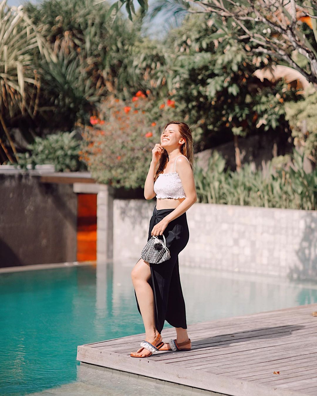 Instagram-worthy shots of Michelle and Pamela luxuriating on the large private pool