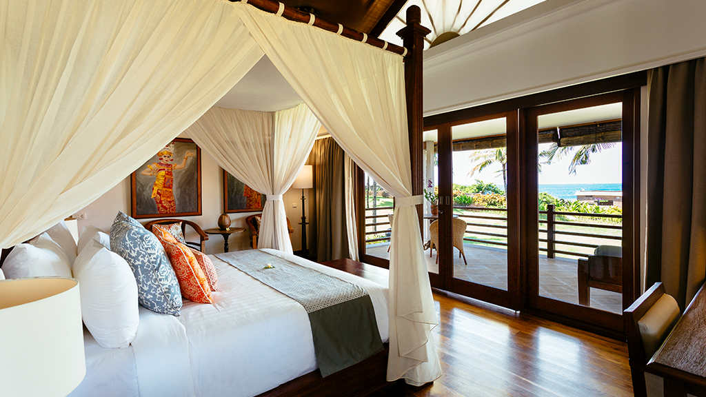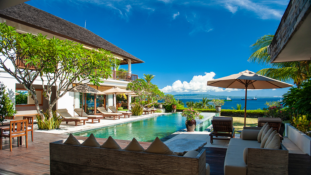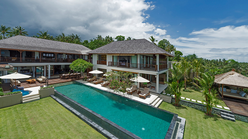 With the same view of the sea temple, Villa Semarapura has vast rolling lawns for yoga sessions and other activities. This beautifully designed villa can fit your entire family within its five luxurious bedroom suites, and offers formal living and dining pavilions, a media room, poolside pavilion with sunken bar, and a 20-metre swimming pool. The charming staff work hard to deliver a unique and memorable experience, from serving succulent seafood feasts and mixing exotic cocktails at the bar, to arranging spa treatments in the massage bale and guiding guests on rice field walks.