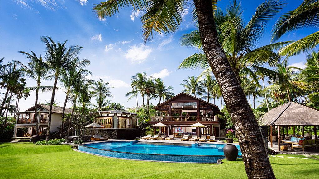 Recline in the architectural beauty and balance of this beachfront retreat on Bali’s chic sunset coast in chic Canggu. Indulge your every whim; yoga on the lawn, a game on the private tennis court, exert at the gym, lounge by the pool, and be polished and pampered in the villa’s exclusive spa.