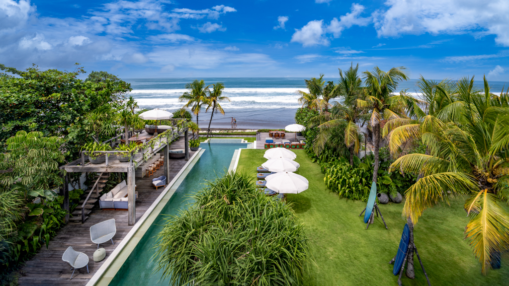 What makes NoKu special? As Elizabeth Barrett said, “let me count the ways”. This fabulous Alex Zabotto-Bentley-designed residence combines ancient and modern to create a lush tropical oasis. Extravagant views over the Indian Ocean and Bali’s famed sunsets are best soaked in from the rooftop terrace or the oceanfront deck. Meanwhile, gigantic marshmallow daybeds, a huge covered dining terrace and a relaxation balé overlook a 27-metre pool and tropical garden.