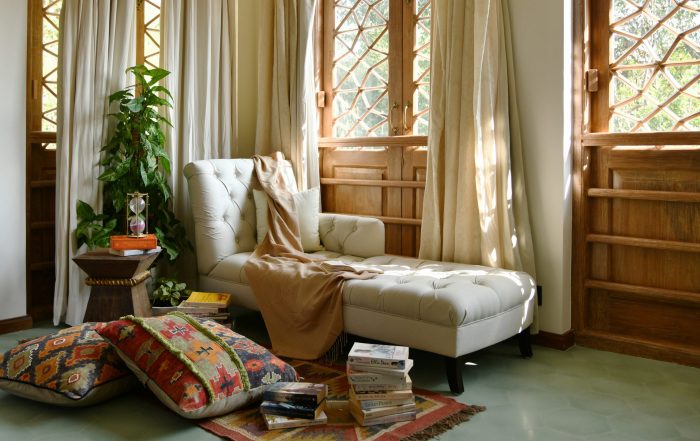 Picture this: you’re hidden away in a breathtaking haven away from the rest of the world, sitting atop a plush cushion beside a monumental door opening onto a lush garden. A flute of champagne in
