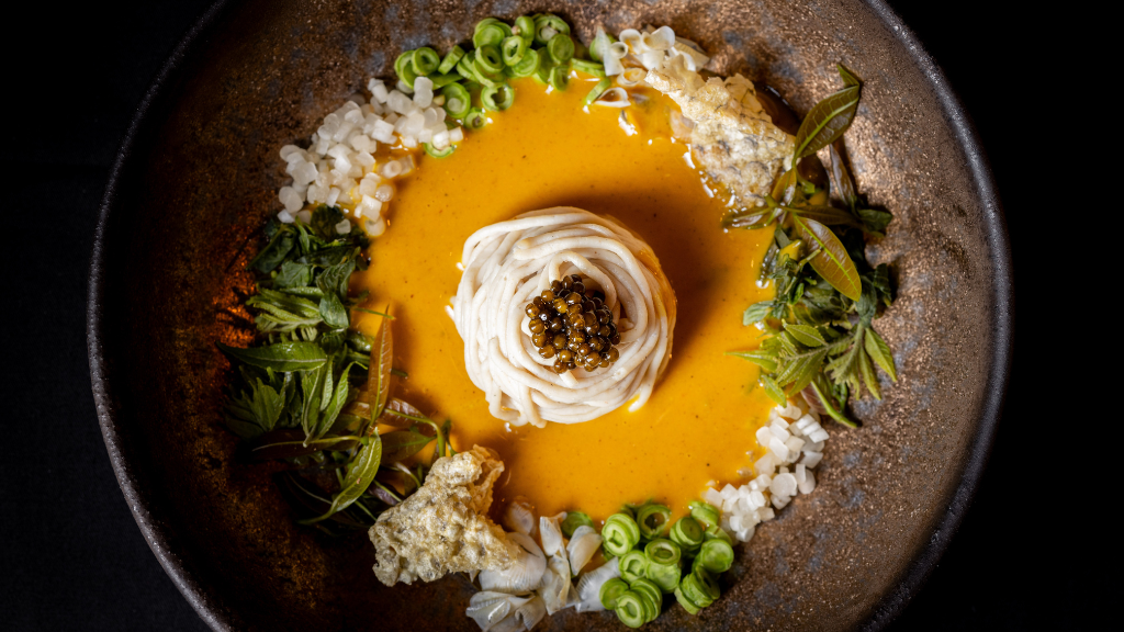The latest 10-moments experience showcases dishes that reflect the team’s locavore philosophy. Highlights include Scallop Nam Kaeng SaiOyster & S.C.O.B.Y.Sa-Tor & Berries SaladCorn Custard & Sea Snail, and Blackened Apple & Duck Leg — each one offering a fresh perspective on Southern Thai produce and fermentation.