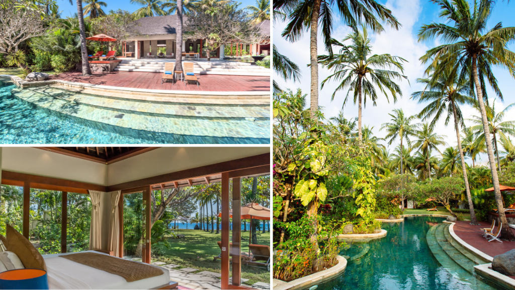 Elite Havens’ Lombok portfolio offers some of the island’s most extraordinary villas within easy reach of the Gilis. Along Sira Beach, three neighbouring estates, Villa Sepoi Sepoi, Sira Beach House, and The Anandita form a sweep of barefoot luxury. Each sits directly on powdery white sand with front-row views of the islets, making them ideal for families or groups travelling together. Sepoi Sepoi unfolds across tropical gardens with a private orchard and a children’s “secret garden,” alongside breezy pavilions and an infinity pool. Nearby, Sira Beach House charms with its traditional Sasak architecture, reflection pools, and a wealth of family-friendly amenities, from croquet to a private tennis court. A few steps along the shoreline, Anandita boasts expansive lawns and a palm-fringed pool.