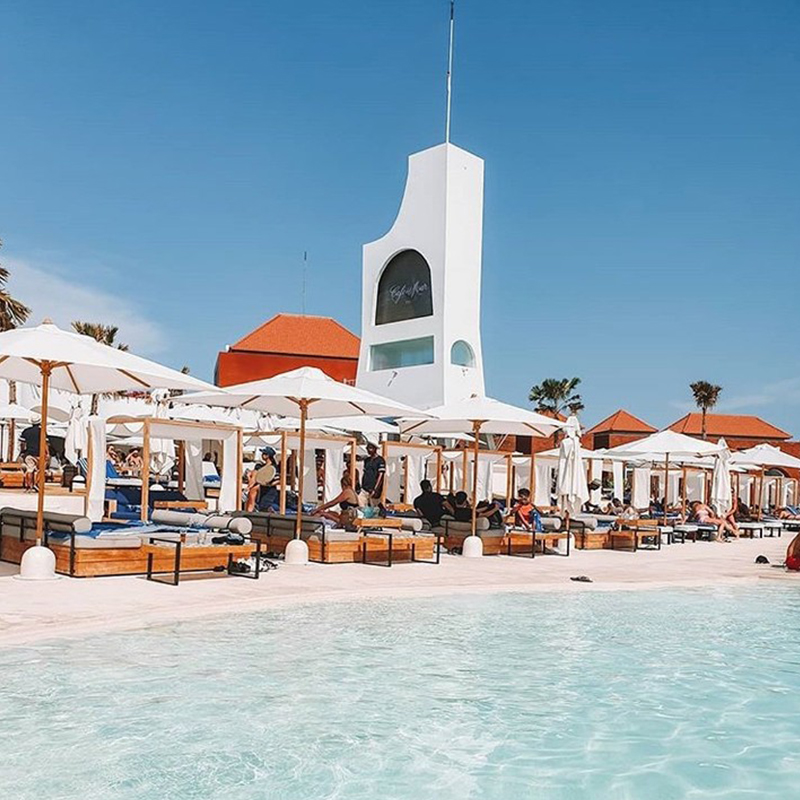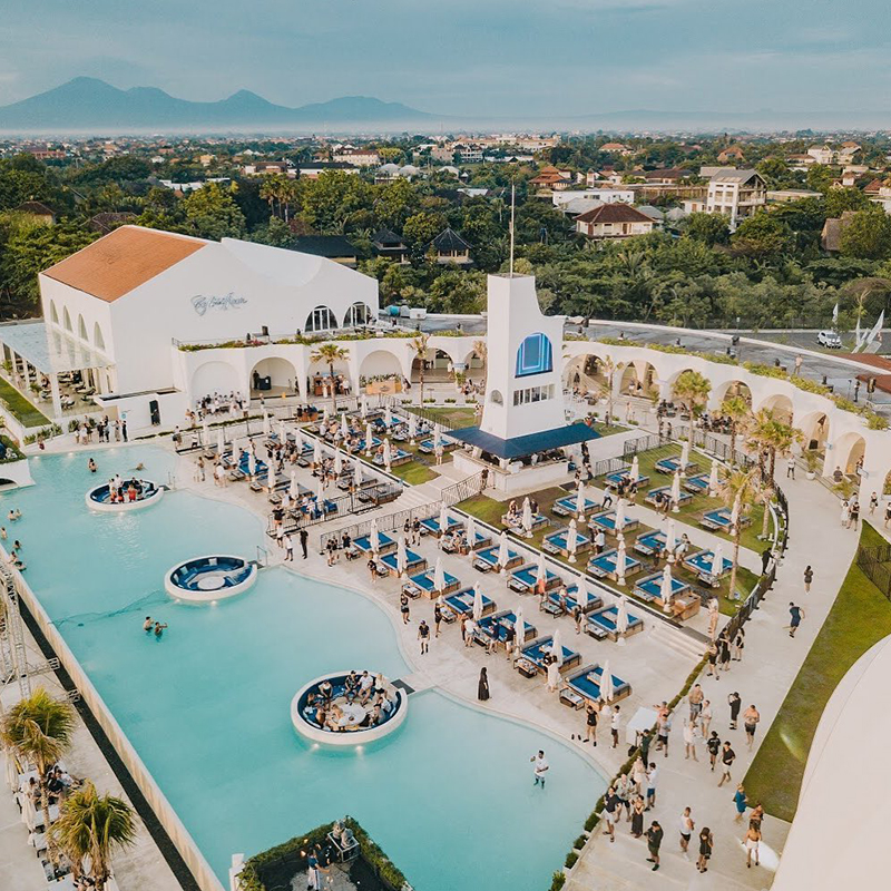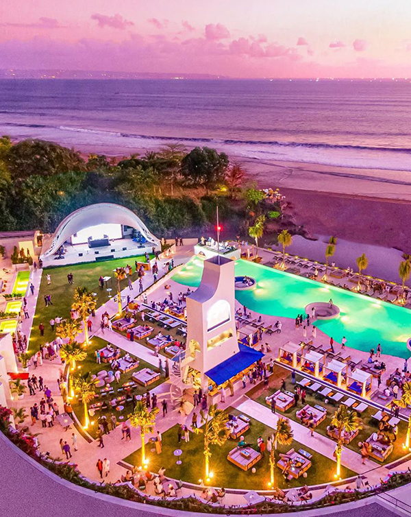 Ibiza’s famous and iconic beach club Café del Mar has officially opened its doors in Bali. Set absolute beachfront on Batu Belig Beach, the vista is sensational, laying claim to one of the best locations in Bali for sunset watching. Clean Mediterranean lines in white-on-white with touches of blue creates a quintessential luxe beach club vibe. The sound system is next-level with an amphitheatre packed full of speakers playing cool tunes mixed by a set of international and local DJs. Entertainment offerings change daily, with dances and live performances through the week in the evenings. Come the weekend, and the dial is turned up towards party beats.